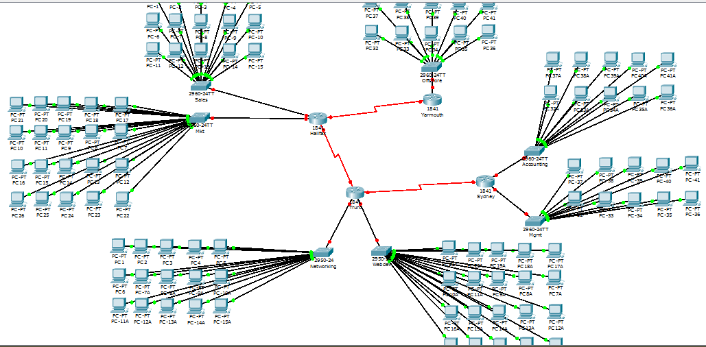 | Cisco Labs | The students were given three labs and were asked to create a working network using the correct number of routers, switches, and computers. Lab 1 (3 routers, 2 switches, 6 computers), lab 2 (3 routers, 4 switches, 3 computers, 1 server), lab 3 (4 routers, 7 switches, 100 computers). They also had to use the proper sub-netting for the IP addresses. | Lab 1 Lab 2 Lab 3 | |||