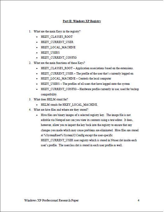 | Windows XP Research Paper | This research paper was the final project in the Windows XP Operating System course. | XP Research Paper |